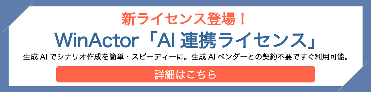 導入後の活用方法 WinActorと生成AIの併用近年では、業務で生成AIを活用する場面が増えてきたことと思います。 ご存じの通り国内シェアNo1のRPA:WinActorでは、昨年から販売開始されたバージョン7.5から、生成AIの利用を自動化できるようになりました。 本記事では、WinA...