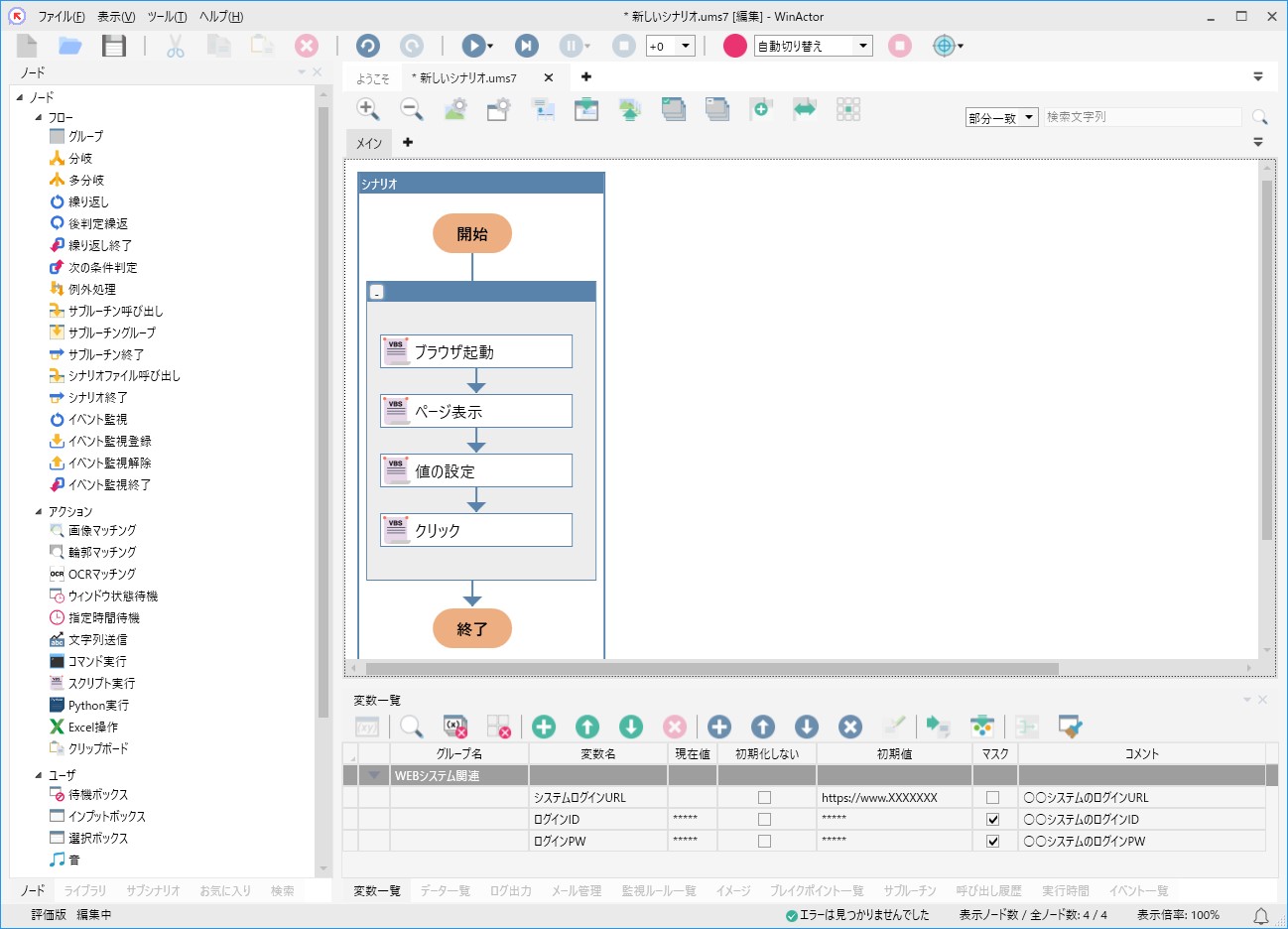 シナリオ…WinActor®を使用して作成する自動化プログラム(ロボット)