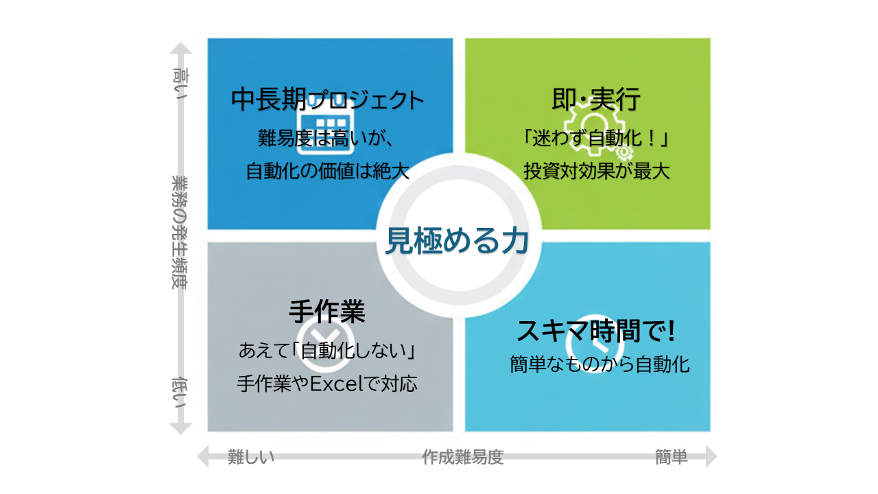 「自動化できるかどうか」ではなく、「自動化すべきかどうか」。 この視点を持つだけで、管理者の判断はぐっとクリアになります。