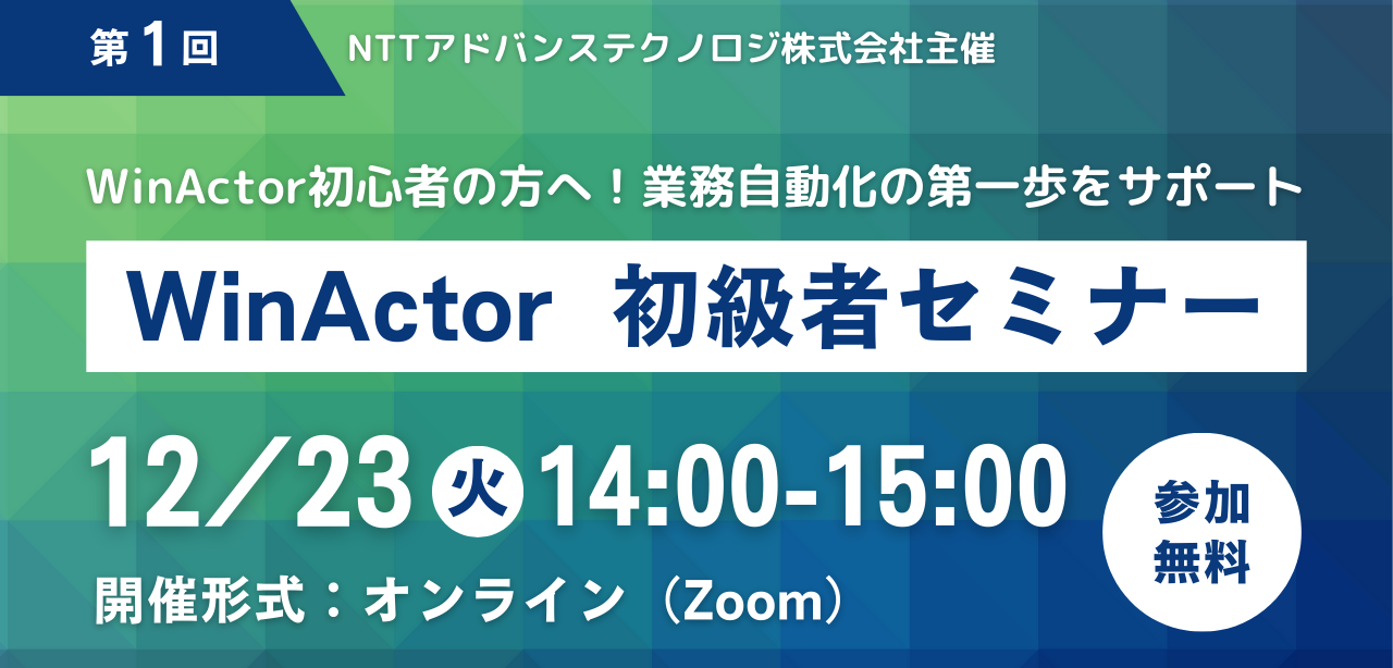 2025年12月より『WinActor初級者向けセミナー』を毎月1回開催いたします。